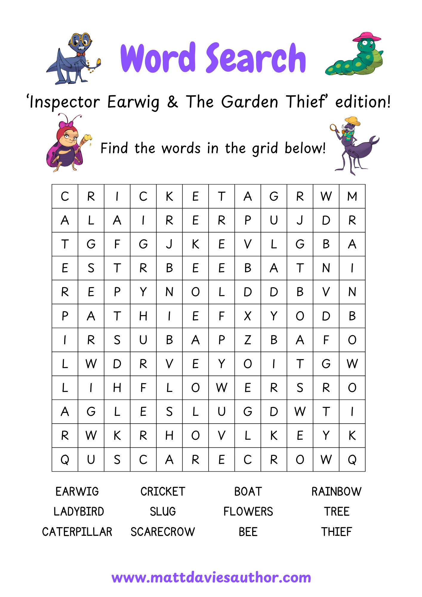 Inspector Earwig - Wordsearch